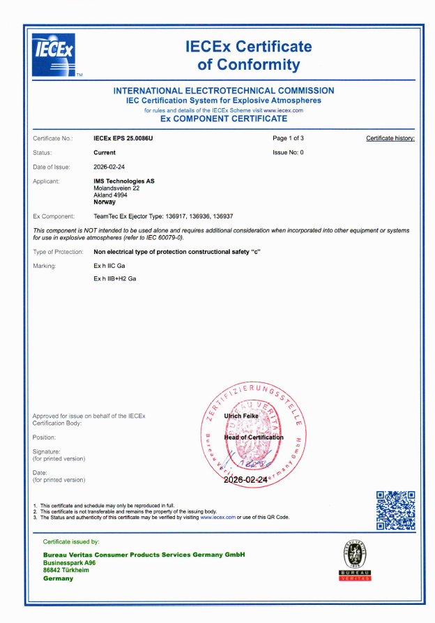 By combining certified safety with in-house engineering and production, TeamTec continues to deliver ejectors designed for reliable performance in demanding conditions.